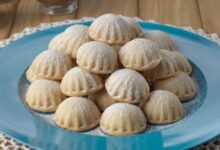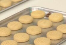 - تُقطع باستخدام القطاعة المزخرفة الخاصة بالبسكويت، ويُكمل مدّ الكميّة المتبقية منها، وتقطيعها.