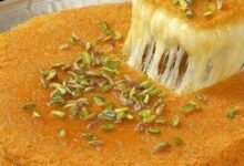 • أخرجي الصينية من الفرن واسكبي عليها القطر البني وهي ساخنة ورشي عليها الفستق الحلبي.