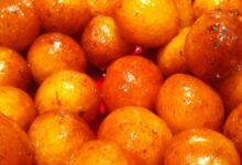 - ندهن صينية متوسطة الحجم بكمية قليلة من الزيت النباتي، ونضع قطع العجينة فيها.