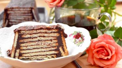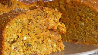صبّ الخليط في قالب الكيك الذي جهزته، واخبزه في الفرن مدّة ساعة أو حتى ينضج تماماً، ثمّ اتركه يبرد مدّة عشر دقائق في القالب، ثمّ اقلبه على رف شبكي واتركه ليبرد تماماً قبل التقديم.