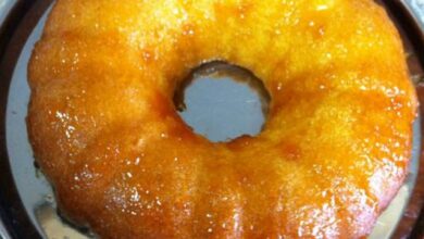 • إخراج الكيك من الفرن، وقلْبه في طبق التقديم على الفور.