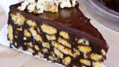 - وضع الخيلط في قالب مجهز وإدخاله إلى فرن درجة حرارته 180 درجة مئوية ولمدة خمسٍ وعشرين دقيقة، واختبار نضجه باستخدام عود خشبي صغير، ثم ترك الكيك جانبًا حتى يبرد.
