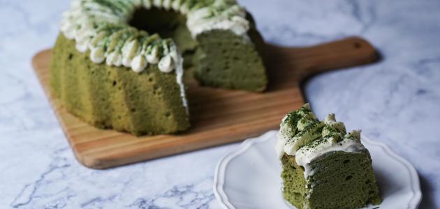 - إخراج الكيك من الفرن، وقلبه في طبق واسع بعد أن يبرد، وتغطيته بشكلٍ كاملٍ بمارينج كريمة الزبدة الخضراء.