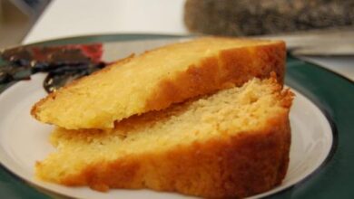 - سكب الخليط في قالب كيك مجهّز، وخبزه على الرف الأوسط للفرن على درجة حرارة مئة وثمانين مئوية لمدّة نصف ساعة، مع الحرص على عدم فتح الفرن أثناء خبز الكيك حتى لا يهبط.