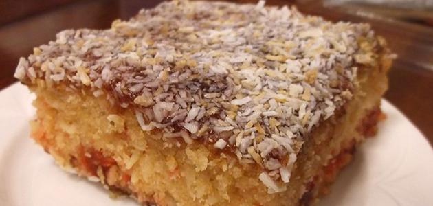 - إخراج الكيك من الفرن وتوزيع عليه خليط الحليب وجوز الهند مباشرة.