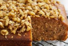 • أسكب الخليط في صينية مدهونة بالسمنة، وأدخلها الفرن على درجة حرارة 180 مئوي لمدّة أربعين دقيقة.
