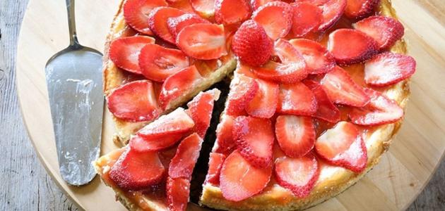 • سكب الخليط الناتج في الصينيّة، وفي وعاءٍ تُقلّب الفراولة مع السكّر لتُوضع على وجه الكيك، علماً بأنّ الفراولة تُضاف هنا دون أيّة سوائل.