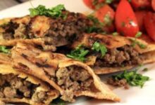 - ضعي ملعقتين كبيرتين من البطاطا المشويَّة بجانب الستيك، ثمَّ قدّميها على الفور.