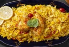 • نضعه في صحن التقديم ونضع ورق الزعتر والغار والبقدونس للتزيين.