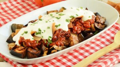 - نضع الخليط في صينية فرن، ونُغطيها بورق القصدير.