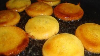 - نقلب المطبق على الجهتين حتّى يتحمر من كل جانب، ثمّ يقدم مع السلطة.