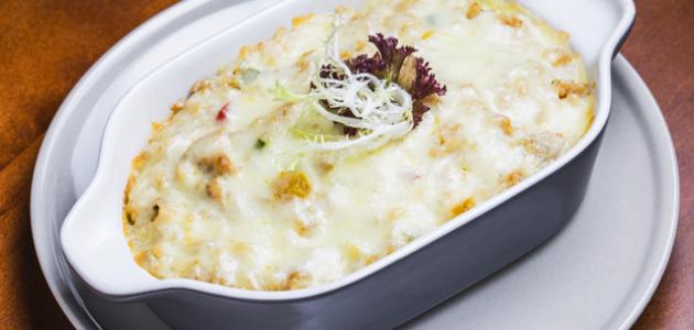 • ندخل الصينية إلى الفرن، ونتركها لمدة ربع ساعة حتى يذوب الجبن ويتحمّر قليلاً.