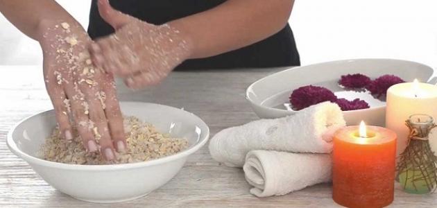 - نفرك البشرة بواسطة أصابع اليد، ثم نغسلها بالماء الدافئ.