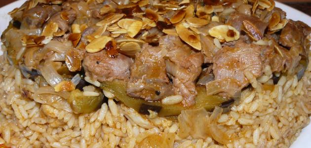 - قلب قدر المقلوبة في طبق تقديم مناسب وتزيينها باللوز، الصنوبر، الزبيب والبصل المقلي.