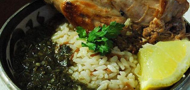 • كيلو غرام من الملوخيّة مقطّعة جيّداً، وتتمّ تصفيتها وفرمها فرماً ناعماً.