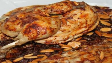 • غسل الدجاجة بالملح والخل، ثم تتبيلها من الخارج والداخل، وحشوها بالبصل والثوم.