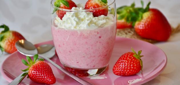 - سكب الميلك شيك الجاهز في أكواب التقديم، ويزين بالقليل من كريمة الخفق البيضاء.
