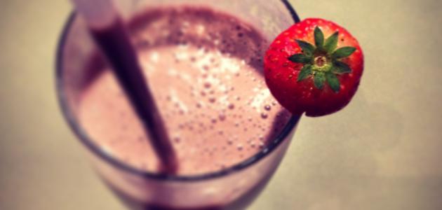 - توزيع باقي كمية الفراولة المقطعة في كوبي تقديم، ثم صب المزيج فيهما، وتزيينهما بالفراولة.