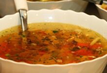 - إعادة الدجاج إلى المرق وإضافة باقي المكونات وتركها تغلي لأربع دقائق حتى ينضج النودلز.