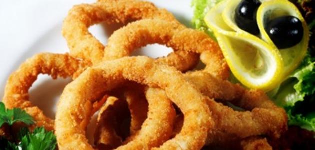 • نضع الزيت على النار ونقلي حلقات الكلمار حتى تنضج.