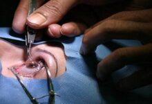 - بروز قزحيّة العين للأمام.
