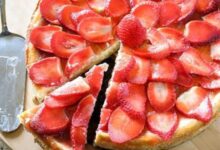 - للتزيين: حبّات كاملة من الفراولة، أو مقطّعة إلى أنصاف حسب الرغبة.