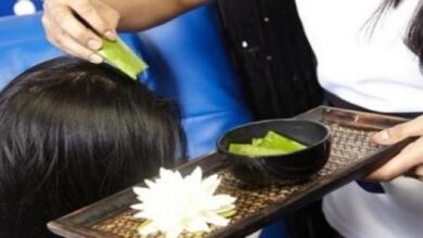 - يُوضع الخليط على فروة الرأس، ويُترك من 20-30 دقيقة.