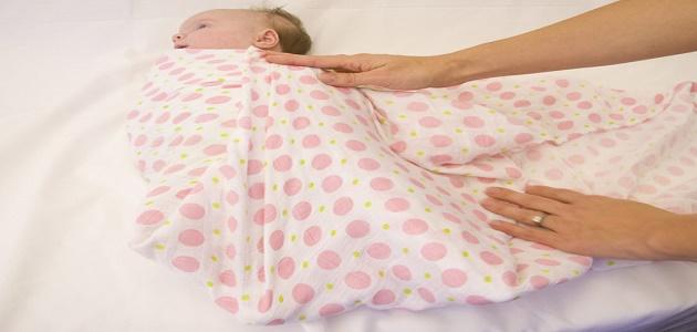 - ابتعدي عن لف الطفل طوال ساعات اليوم؛ لأنّ ذلك يعيق من حركة الطفل الطبيعية وكذلك نموه، فيجب أن يتمتع بساعات يكون فيها حُر الحركة من اللف.