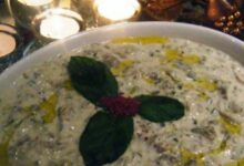 - حبة من الباذنجان المقطعة إلى مكعبات ومحمّرة حتى القرمشة.