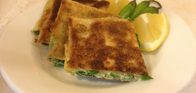 • نقلب المطبق على الجهتين حتّى يتحمر من كل جانب، ثمّ يقدم مع السلطة.