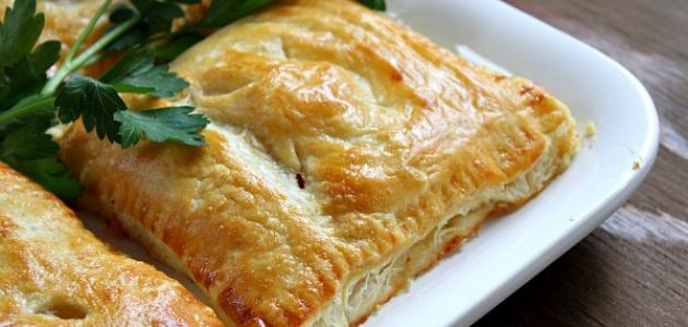 - يدار المستطيل بمقدار تسعين درجة، ويمد من جديد إلى مستطيل كبير مقارنةً بالقياس السابق، وتكرر عملية الطي كالسابق، ويغطى العجين بالنايلون، وتبرد على الأقل لمدة نصف ساعة في الثلاجة.
