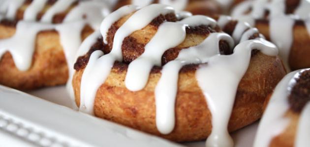 • بعد أن تبرد قطع السينابون نسكب ملعقة من صوص السينابون على كل واحدة.