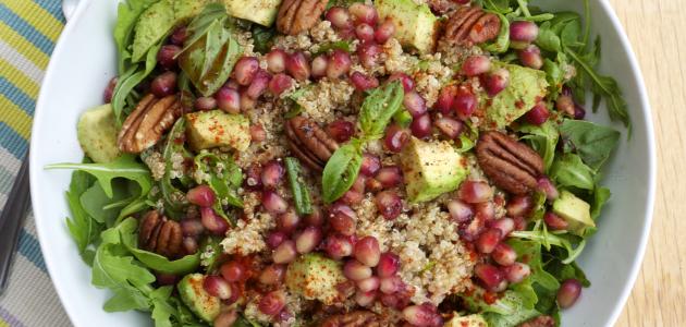 - وضع الجرجير والرمان في طبق عميق وتوزيع الصلصة وتقديم السلطة مباشرة.