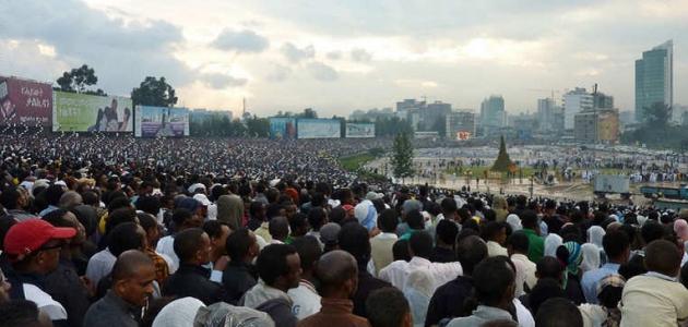 تشير إحصائيات عام 2013م إلى أن عدد سكان الجمهورية الإثيوبية قد ارتفع إلى 938.00000 نسمة؛ حيث كان حتى عام 1983م لا يتجاوز 33.5 مليون نسمة، ويذكر بأنّ القرن التاسع عشر الميلادي كان عدد سكانها تسعة ملايين نسمة فقط، ويذكر بأنّ البلاد تحتضن عدداً من المجموعات العرقية؛ حيث يصل عددها إلى ثمانين مجموعة تقريباً، وتُعتبر جماعة الأورومو هي الأكبر في البلاد؛ حيث تُشكّل ما نسبته 34% من العدد الإجمالي لعدد السكان هناك.
