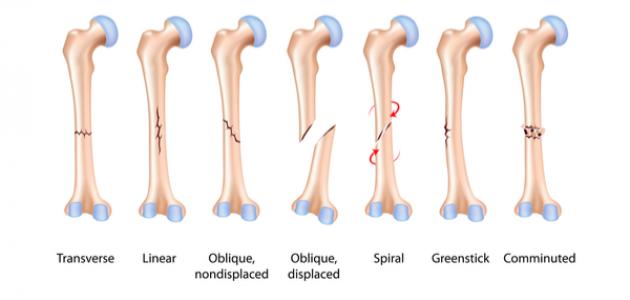 • الكسور البسيطة: هي الكسور التي لا ينتج عنها أي جرحٍ أو خدش قد يؤدي إلى حدوث التلوث والالتهاب.
