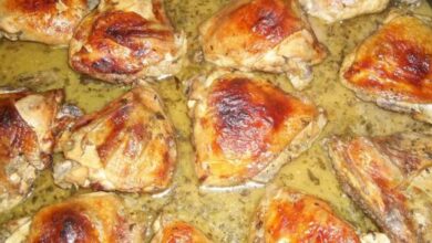 - رصّ الدجاج على الصينية مع ترك مسافات متساوية بين كل قطعة وأخرى.