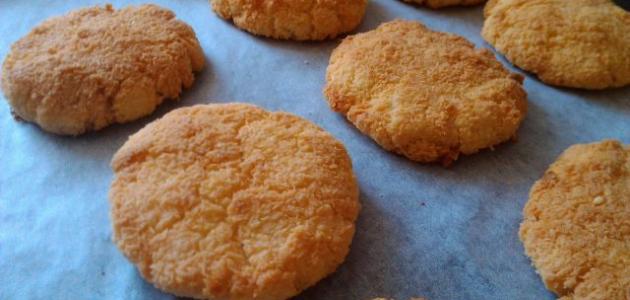 - نُشكل البسكويت على شكل أقراص متوسطة الحجم، ونُغطيها بجوز الهند.