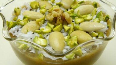 • أدخلي صينية حلو أم علي إلى الثلاجة لتبرد لمدة لا تقل عن ساعة.