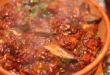 • نسكب الإيدام في طبق التقديم إلى جانبه الخبز والمخللات.