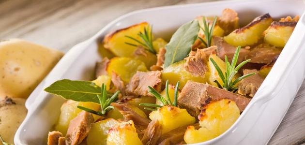 - نغسل اللحم جيدًا في الماء، ونصفيه ونقوم بتقطيعه إلى قطع متوسطة الحجم.