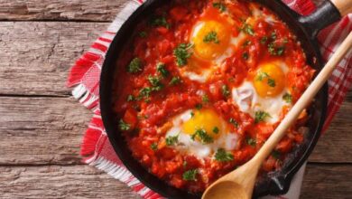 - ننقل الخليط إلى طبق التقدّيم، ثمّ نقدمه ساخناً.