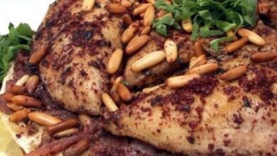 • لوز وصنوبر محمص للتزيين.