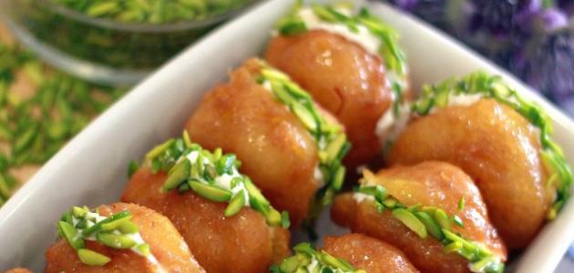 - ثمَّ ضعيها في القطر، وغطّسيها جيداً حتَّى تمتص القطر، ثمَّ قدّمي اللقيمات باردة.