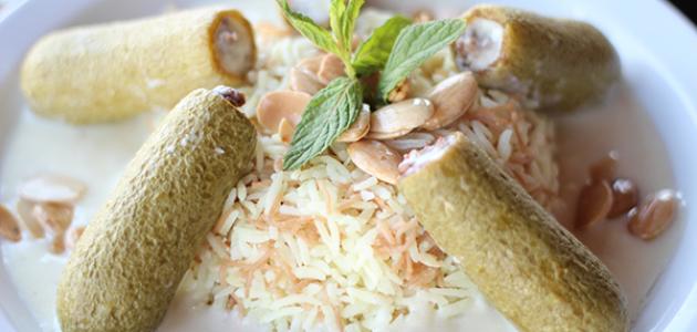 - رفع الأرز بالشعيريّة عن النار ووضعه في صحن للتقديم، وتقديمه بجانب المخشي باللبن.