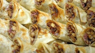 • إخراج اللفائف من الفرن، وترتيبها في طبق مناسب للتقديم، وتقديمها.