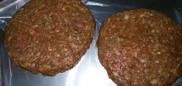 - تقطيع اللحمة إلى أقراص ذات حجم مناسب ومتوسط.