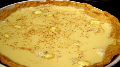 - نضع الحليب السائل، بالإضافة إلى النشادر في وعاء آخر ونخلط، ثم نضيف الحليب السائل فوق خليط البيض ونستمر في الخلط.