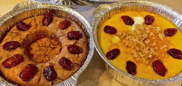 - نضع العجينة في طبق، ثمّ نضع فوقها التمر، ونصف كمية الزبدة.