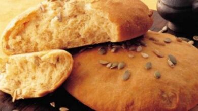 - نضع المقلاة على نارٍ منخفضة، ونغطيها، ونتركها مدّة خمس دقائق، ثمّ نقلب الرغيف على الجهة الأخرى، ونتركه مدّة خمس دقائق.
