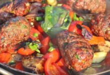 • نترك الصينية داخل الفرن حتّى ينضج الكباب ويتغير لونه.